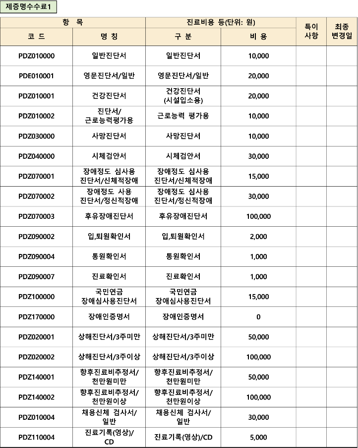 | 입원비 수납 | - 매월 말일까지를 기준으로 그다음 달 초에 수납 |