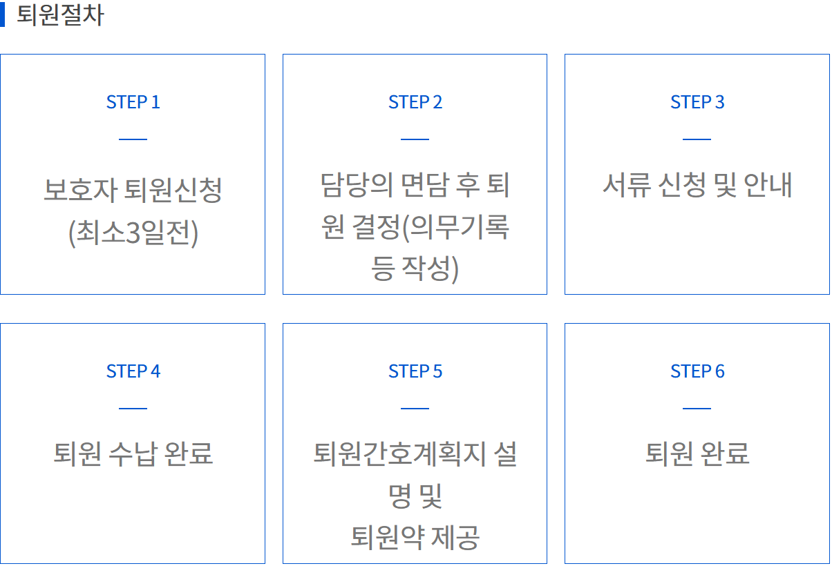 | 입원 시 준비 물품 | - 세면도구, 속옷, 수건, 슬리퍼 등 |